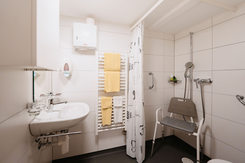 Jedes Zimmer verfügt über ein eigenes WC, in den meisten Fällen ergänzt durch eine eigene Dusche. Zudem stehen einTisch- und Sitzgelegenheiten zur Verfügung.