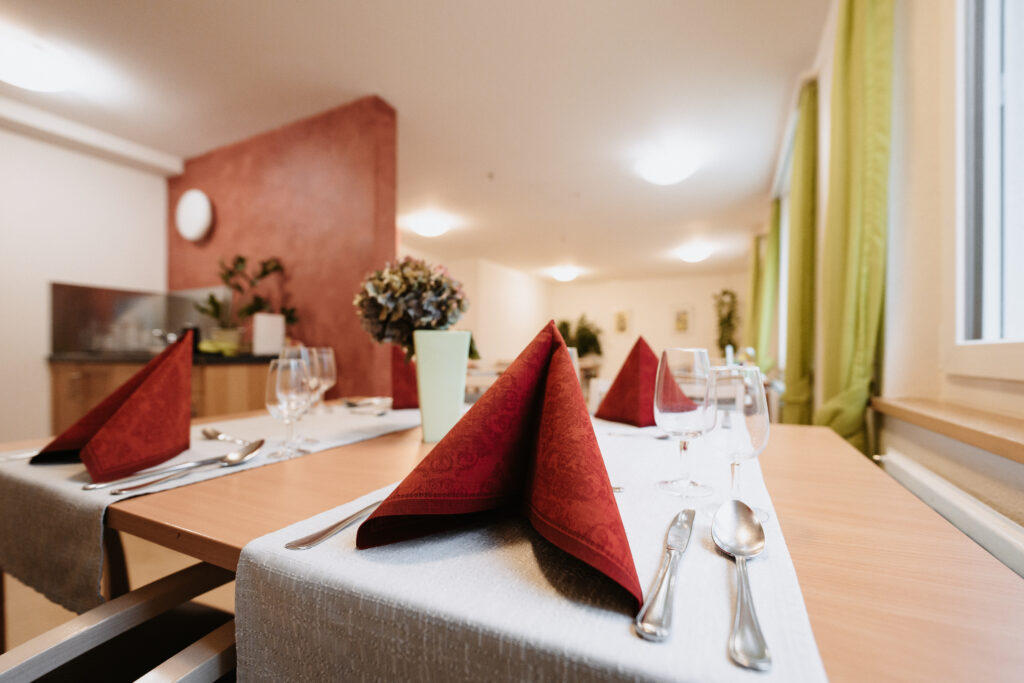 Unsere gemütlichen Zimmer und gepflegten Gemeinschaftsbereiche schaffen Wohnkomfort und Geborgenheit. Hier dürfen Sie sich ganz zuhause fühlen. Der lichtdurchflutete Wintergarten und die Terasse laden zum Verweilen ein und bieten Raum für gesellige Stunden.