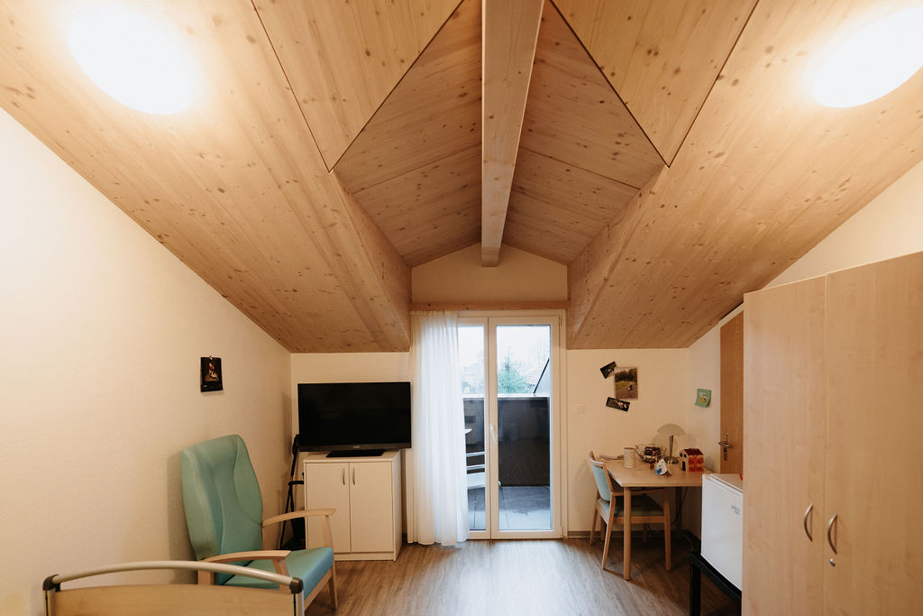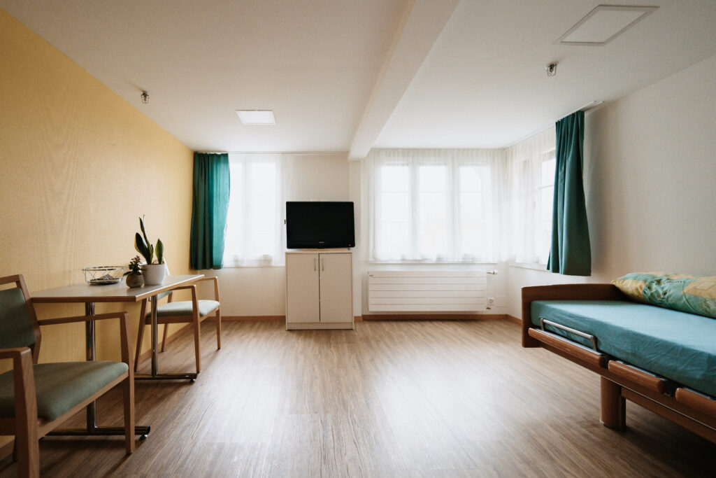 Bewohnerinnen und Bewohner haben die Möglichkeit, ihr Zimmer mit eigener Möblierung zu ergänzen und so eine vertraute, individuelle Atmosphäre zu schaffen.